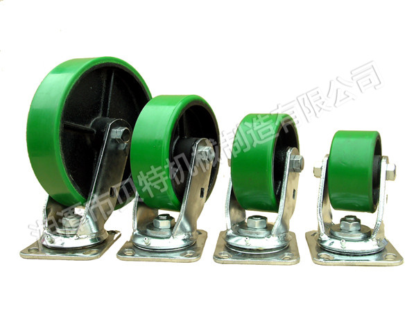 熱塑聚氨脂腳輪特性:可循壞熱塑性聚氨酯車胎聚丙稀預聚物輪心,是既規定載貨又重視路面維護的夢想挑選,運作起來低噪聲、抗磨損、抗沖擊、紡潤滑油、礦物質機油和某些酸質沒問題運行速度達4km/h。